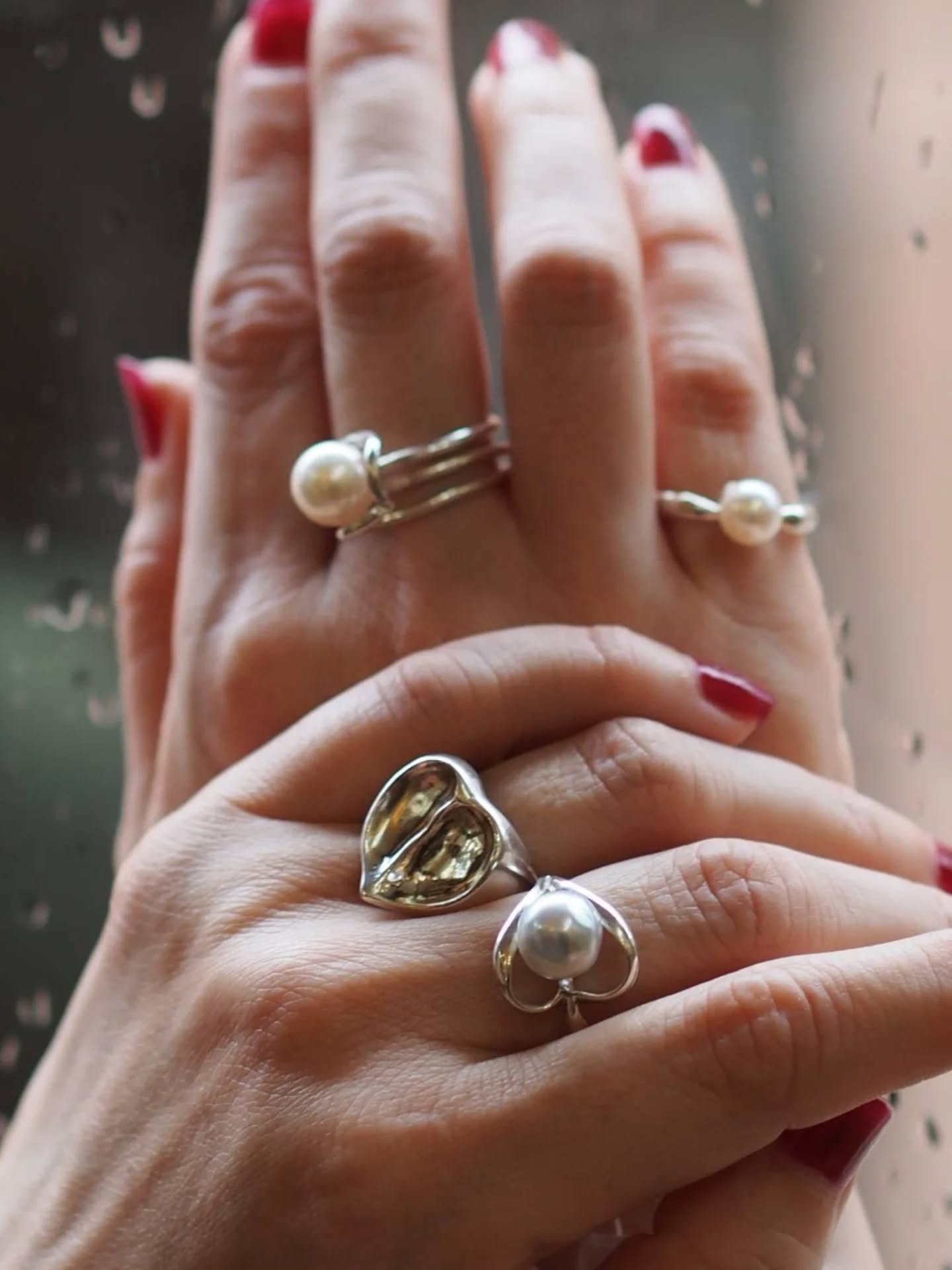 New ring 4点の爪が真珠を優しく、丸く、包む姿が有機的...